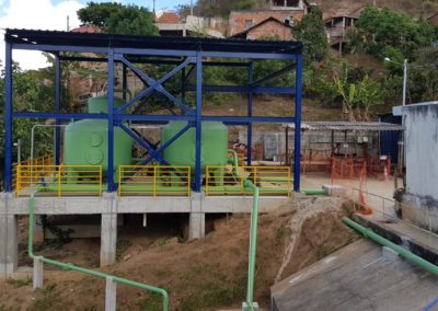 - DESCRIÇÃO: Implantação de sistema de tratamento de água de poços no município de Resplendor-MG, incluindo a execução de obras civis e montagem do sistema já projetado. Foi executada uma laje em um talude dentro das instalações da COPASA em Resplendor. Sobre a laje foi instalado o sistema de tratamento, inclusive as tubulações de aço carbono derivada da captação que abastecia o sistema convencional existente.